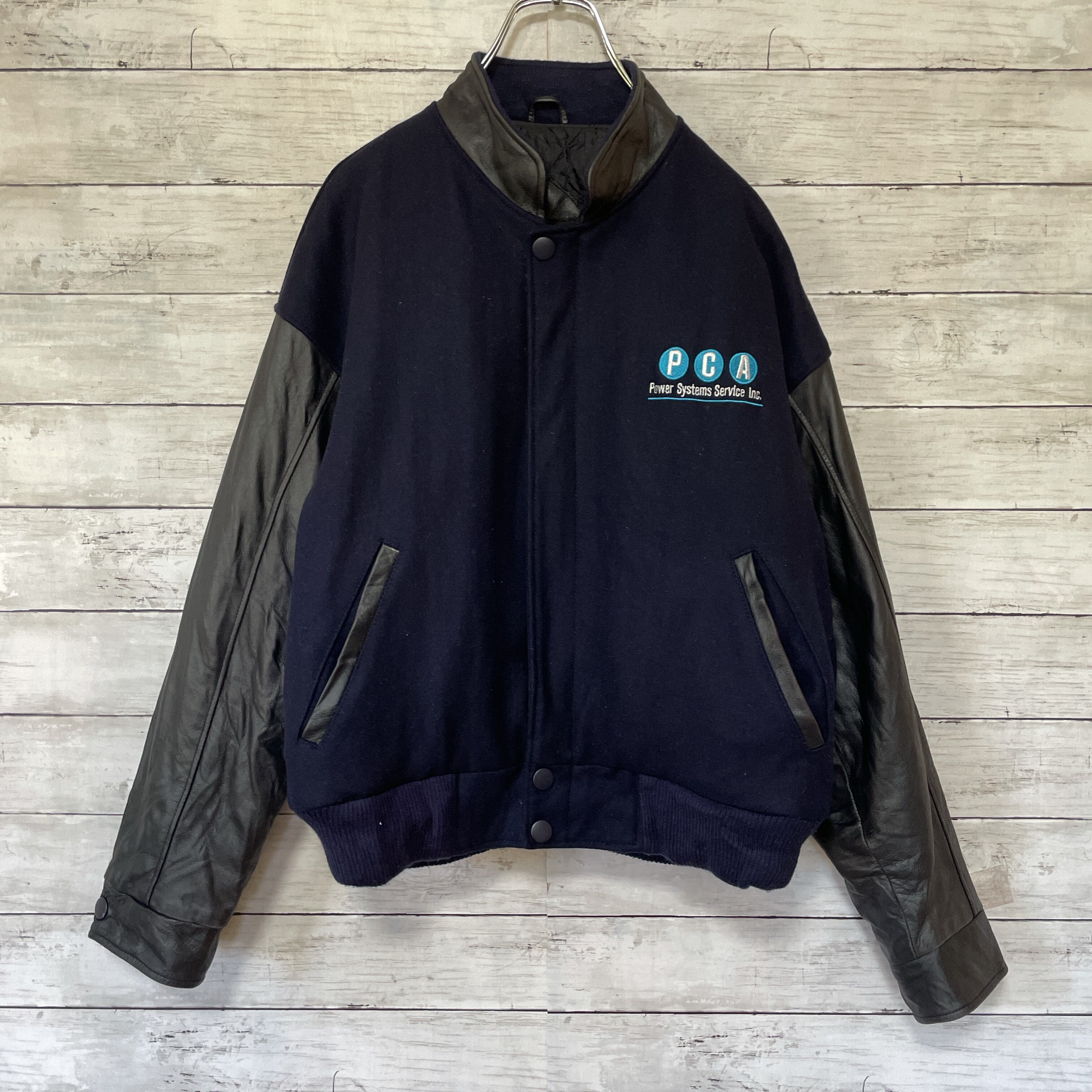 USA古着 スタジャン 皮 ワンポイント刺繍ロゴ