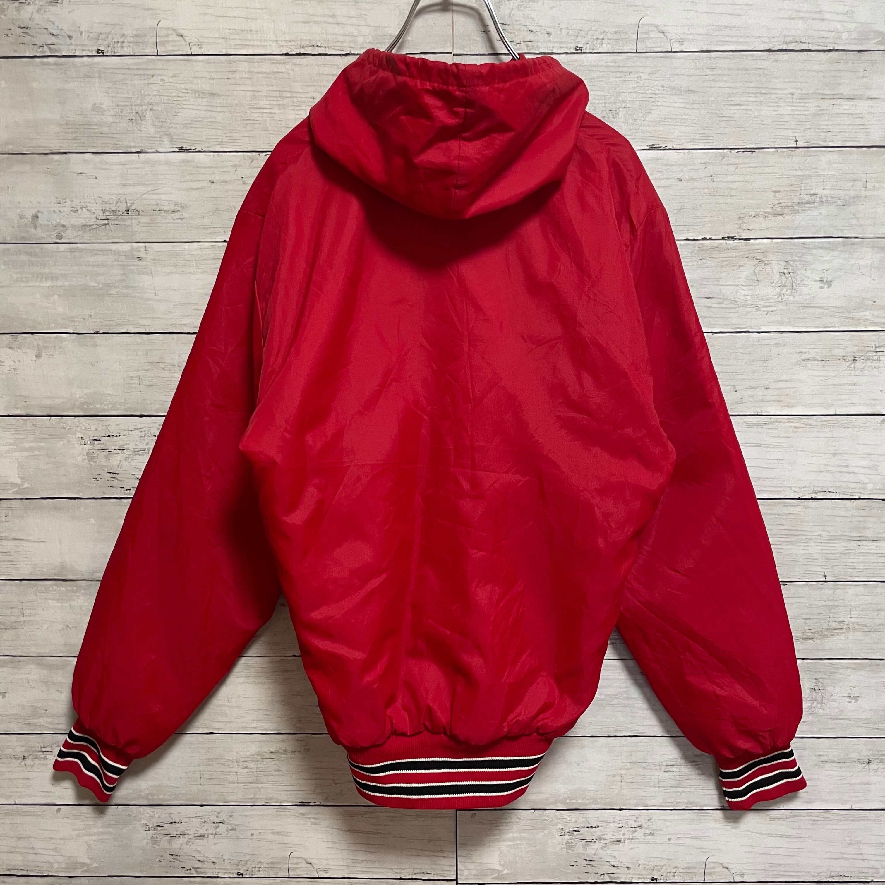 USA製 フーディー ナイロンジャケット ハーフジップ ワンポイント刺繍ロゴ